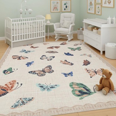 Butterfly Area Rugs 5x7 for Baby Nursery Black Rugs for Bedroom Living Room Kids Room Washable Non Slip Floral Floor Decor