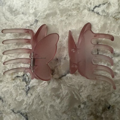 4-Piece claw hair clip set includes both solid color and swirled designs. Butterfly shape creates a beautiful look. Great for styling hair. Suitable for all hair types.