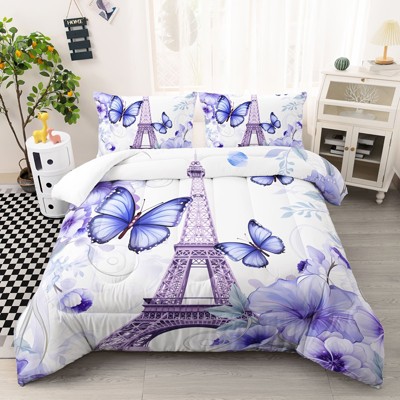 Butterfly Comforter Set, 3 Piece A Love Theme Bedding Quilt Set, Soft Microfiber Complete Bedding Sets for All Seasons