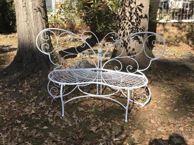 [This review was collected as part of a promotion.] This 62" L 2 indoor/ outdoor 2 person white metal butterfly shaped garden bench is absolutely beautiful. I'm so looking forward to Spring and Summer so I'm able to put this in my backyard next to my flower garden, it's picture perfect.
