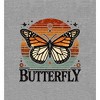 Embrace nature's beauty with this crew neck short sleeve apparel, showcasing a vibrant butterfly graphic on a red, yellow, and green circle, accompanied by bold "Butterfly" text in black. Crafted from high-quality materials, this shirt offers a stylish yet comfortable fit for everyday wear. It's simple to care for. Just machine wash it on cold with like colors and tumble dry on low heat.