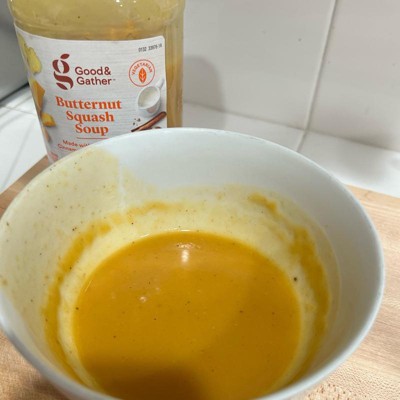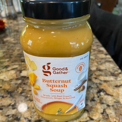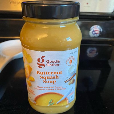 This Butternut Squash Soup from Good & Gather™ is a creamy, hearty option for a main dish or side. Made with real cream, cinnamon, ginger, and nutmeg, this butternut squash soup is made with no artificial colors, flavors, or sweeteners. A delicious vegetarian option that's also kosher, it pairs great with a hunk of crusty bread.