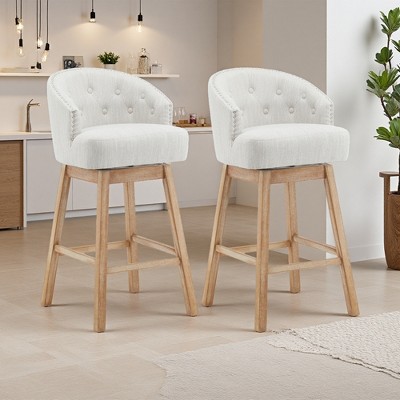 Button Tufted 180¡ã Swivel Counter Height Bar Stools with Wood Footrest, Set of 2