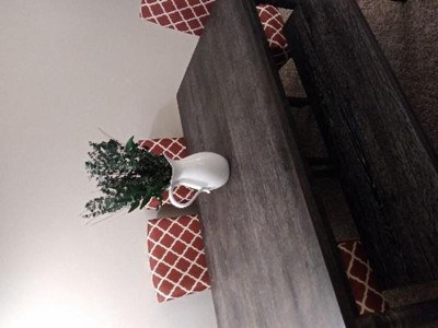 • This dining table offers a rustic finish