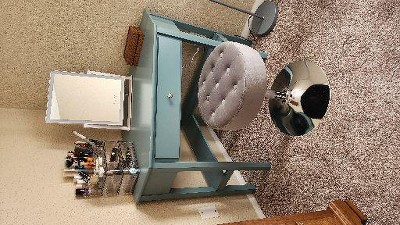 This desk fit perfectly as a vanity in a corner of my bathroom. The drawer holds all of my makeup, laid out for easy access. The two shelves hold a lot! My vanity stool slides in beautifully. Read the instructions carefully - it says it is a two-person job. So if you don’t have a lot of experience in furniture assembly, be sure to get help. I was able to do it by myself but I have a lot of experience.