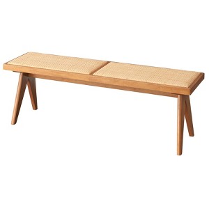 Buylateral Valentina Modern Rattan Solid Wood Dining Bench Light Walnut