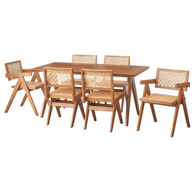 Buylateral 7pc Valentina Modern Dining Set 1 table 4 chairs 2 arm chairs Light Walnut