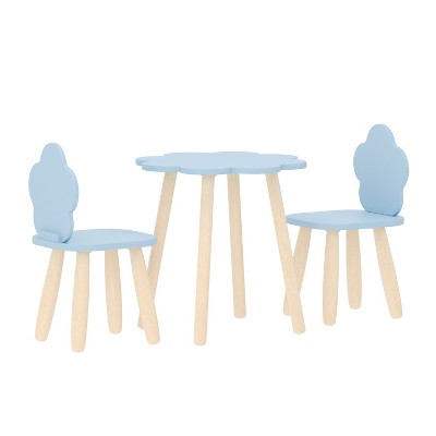 Product Name: Buzz & Bloom Kids 3-Piece Wood Cloud-Shaped Table and Chairs Set, Blue/Natural