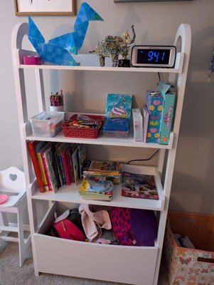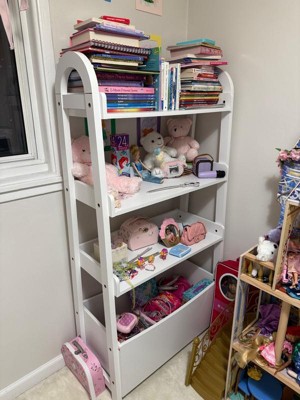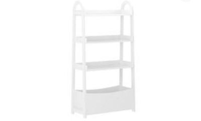 Weave a tale of beauty and enchantment in your little one’s bedroom or playroom with this open style bookshelf featuring gracefully arched top sides and a lower bin for storage. This bookcase with storage is a simple yet stylish way to add practical organization as well as a touch of whimsy to your child’s environment. This bookshelf boasts a timeless, yet simple and subdued design that is engineered to be adaptable to nearly any design scheme or décor arrangement. Equipped with three dedicated shelves, there is plenty of room for your growing reader’s books, their favorite stuffies, or decorations to add flair to their furnishings. Plus, a generous bottom bin provides convenient and accessible storage for your young one’s toys or games. Beautifully crafted from engineered wood, this bookshelf with squared legs is as durable as it is beautiful. Guided assembly and all necessary tools are included for your convenience. Upkeep is just as simple by using a dry cloth to wipe clean. Showcase a playful, welcoming style in your child’s space while adding functional storage and organization with this open bookshelf.