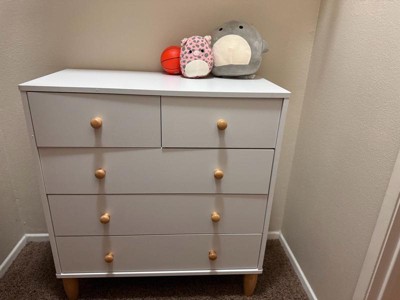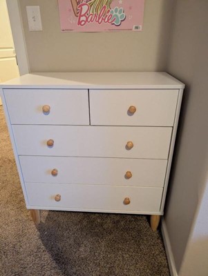 Buzz & Bloom Large Kids 5-Drawer Wood Dresser Chest for Bedrooms, White/Natural