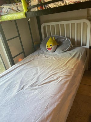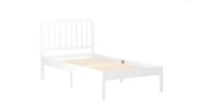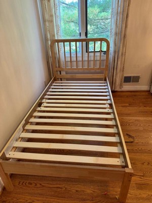[This review was collected as part of a promotion.] Cute bed for my 3 year old! Frame seems durable and the white frame matches the rest of his furniture well. Love that we don’t have to add a box spring to the bed! My only complaint is the corners of the frame at the foot of the bed are sharp, and my son has scratched himself a few times when getting off the bed near the foot. We added some corner protectors and hopefully that will solve the issue!