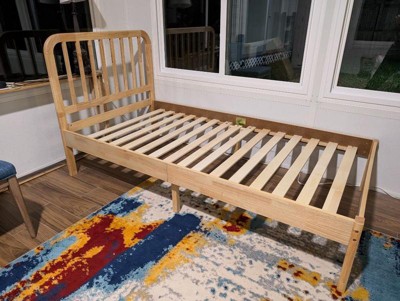 Product Name: Buzz & Bloom Twin Platform Bed Frame with Wood Slat Headboard and Foundation in Natural