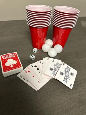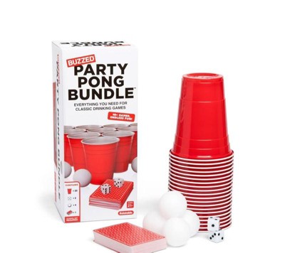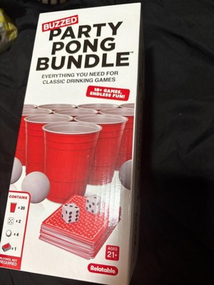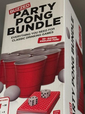 Level up your next party with the Buzzed Party Pong Bundle Drinking Kit, your ultimate all-in-one pack for over 10 classic adult drinking games! Whether you're hosting a party, tailgate, or beach bash, this kit has everything you need — 20 cups, 4 ping pong balls, 2 dice, and a deck of cards — plus instructions for favorites like Beer Pong, Flip Cup, and Kings Cup. Designed for players 21 and older, this bundle keeps the competition lively and the fun flowing. Perfect for holiday parties and winter get-togethers, this game brings easy energy to every gathering. A great option for gifting friends, roommates, or anyone who loves hosting.
