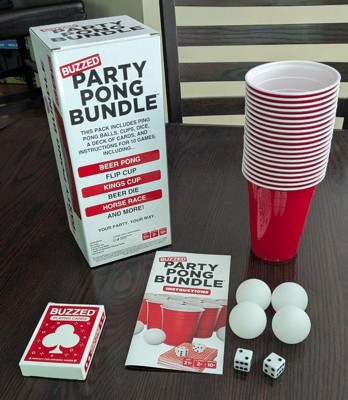 [This review was collected as part of a promotion.] The Buzzed Party Pong Bundle is a fun game set! It has all the parts needed for up to 10 games - cups, balls, dice, and cards. The helpful instruction booklet lists all 10 games you can play and what's needed for each, so there is a lot of variety, from beer pong to flip cup!