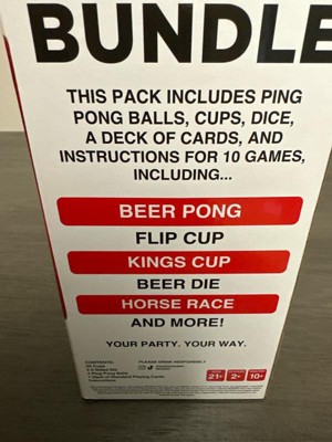 - Complete party kit for over 10 classic drinking games including Beer Pong, Flip Cup, and Kings Cup