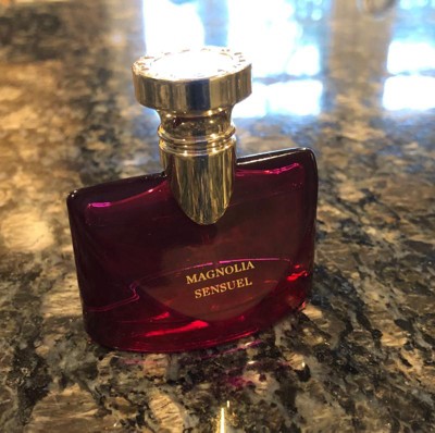 [This review was collected as part of a promotion.] The BVLGARI Splendida Magnolia Sensuel Eau de Parfum smells just heavenly. I can smell hints of orange, lemon and jasmine as well as magnolia. The fragrance lasts a long time and is still noticeable for days on my jacket. Very sensual fragrance that my husband likes on me.