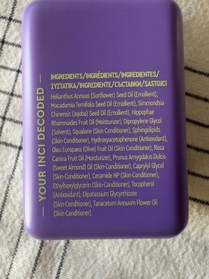 A: Hey Alicia, Helianthus Annuus (Sunflower) Seed Oil, Macadamia Ternifolia Seed Oil, Simmondsia Chinensis (Jojoba) Seed Oil, Hippophae Rhamnoides Oil, Dipropylene Glycol, Squalane, Sphingolipids, Hydroxyacetophenone, Olea Europaea (Olive) Fruit Oil, Rosa Canina Fruit Oil, Prunus Amygdalus Dulcis (Sweet Almond) Oil, Caprylyl Glycol, Ceramide NP, Ethylhexylglycerin, Tocopherol, Dipotassium Glycyrrhizate, Tanacetum Annuum Flower Oil.