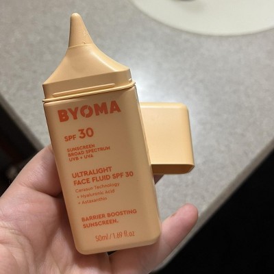 [This review was collected as part of a promotion.] BYOMA’s Ultralight Face Fluid SPF 30 is such a great everyday sunscreen. It goes on super light, blends in easily, and doesn’t leave a white cast at all. I love how it keeps my skin feeling hydrated without getting greasy. It’s become a go-to in my morning routine, especially since it works well under makeup too.