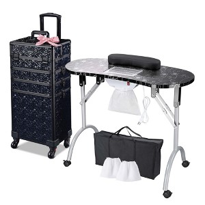 - Kit includes a nail table and 4in1 rolling makeup train case for storage of nail polishes and tools