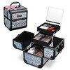 - Open to reveal a flip-up mirror and 2 extendable trays for storing makeup essentials, and bottom space for small bottles
