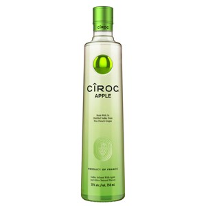 CIROC Apple is a rich tasting, award-winning spirit made with vodka distilled five times from fine French grapes, finished in a tailor-made copper pot still in Southern France. This spirit is masterfully infused with a distinctive blend of green apple and other natural flavors, resulting in a taste experience that is lusciously different and elegantly smooth. Perfect for a CIROC Apple & Cranberry Cocktail. Includes one 70 proof 750 mL bottle of CIROC Apple. Please drink responsibly.