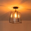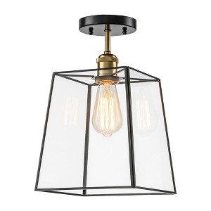 The semi-flush mount ceiling light comes in a trapezoidal shape, delivering an simple and stylish look. It features a black frame,brass light socket and clear tempered glass shade, showcasing a vintage and modern style. The open bottom makes it easy to change bulbs and ensures even distribution of light. All these make this flush mount perfect for both indoor and outdoor spaces, adding a decorative touch to any room while ensuring functional lighting.