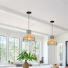 The simple shape of this ceiling lamp combined with the texture of the hand woven rattan gives any space an organic, timeless feel. Hang it in your foyer, kitchen, home office, bedroom or in your gazebo (as long as not exposed to the elements) to brighten up the space. The pendant light showcases a design like a rattan basket using material primarily used in patio furniture for a distinctive and stylish fixture that works well in a home. The shade is made from natural rattan, which is hand-woven around a metal wire frame for a beautiful juxtaposition of material. With textured hand woven, the shade allows pin-pricks of light to shine through and provide ambient illumination around the room while directing the rest of the light down for some focused, task lighting.