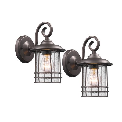 C Cattleya 2-Pack 12in. Oil Rubbed Bronze Outdoor Wall Lantern with Water Ripple Glass