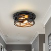 This industrial-style flush mount ceiling light is a blend of modern design and vintage charm, perfect for adding a warm and inviting glow to your interiors. Featuring a black metal frame with a geometric openwork design, it creates a striking visual effect while allowing maximum light dispersion. The dual exposed Edison-style bulbs(not include) bring an elegant and timeless ambiance to any room. Its compact, low-profile design makes it ideal for spaces with lower ceilings or a contemporary aesthetic.