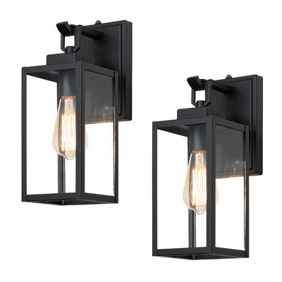 Elevate your exterior lighting with this dusk to dawn outdoor wall lights, featuring a bold rectangular frame in matte black and clear glass panels that showcase triple candelabra-style bulbs (3xE12). The built-in sensor automatically turns the lights on at dusk and off at dawn, providing reliable, hands-free illumination. Crafted from weather-resistant materials for long-lasting durability and compatible with incandescent, LED, and other E12 bulbs, these fixtures combine classic design with everyday practicality-perfect for porches, patios, garages, and entryways.