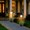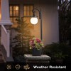 - Crafted with a off-white acrylic globe shade, bringing a unique and warm glow in your outdoor space.