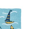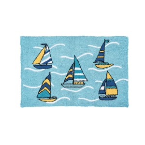 Set sail on your next adventure with the Dockside hooked accent rug. This breezy hand guided machine hooked rug features an allover sailboat motif crafted with a unique watercolor-inspired style in nautical marine blue, teal, and yellow the perfect pallet for a sunny afternoon at the lake house, or for a snug beach cottage on the coast. Wherever your adventures take you, you'll be sailing in style. This rug is crafted with acrylic facing and a 90-percent cotton/10-percent latex backing. A non-slip rug pad is recommended for use with this accent rug. Size: 22 x 34 inches. Machine washable.