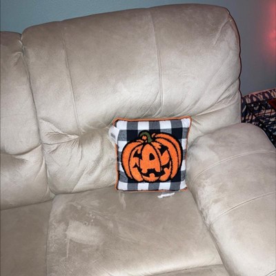 C&F Home Jack-O-Lantern Pumpkin Check Tufted Halloween Accent Pillow, 12" x 12"