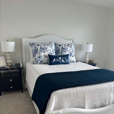 C&F Home White Birds On Branch Navy Blue Velvet Embroidered Accent Pillow, 12" x 24"