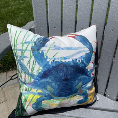 Refresh your space with this 18" x 18" blue crab accent pillow featuring HD printed artwork by Two Can Art. Made from 100% polyester with a weather resistant finish, it is perfect for coastal indoor or outdoor styling in living rooms, porches, patios, or sunrooms.