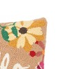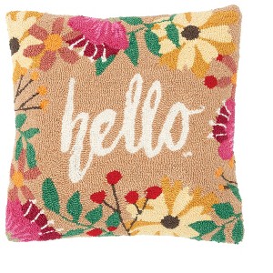 Greet your guests with brightly colored flowers and a scripted "hello" motif. Hooked for a unique texture, this pillow includes a convenient zipper closure and removable insert for easy care.