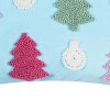 Add a playful pop of color to holiday decor with this charming Trees Hooked Pillow. Featuring a light blue background, the surface is adorned with a whimsical pattern of alternating pink, blue, red, and green trees. Scattered between the vibrant trees are white hooked ornaments, adding a festive touch that ties the design together. Perfect for cozying up your living space, this pillow combines holiday cheer with a fun, modern twist, making it a delightful accent for any room.