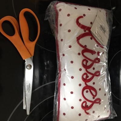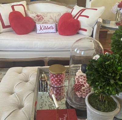 This 6" x 12" embroidered pillow features a simple "Kisses" design with polka dots. Perfect for adding a touch of Valentine's Day romance to your home décor. A thoughtful and affordable gift for your loved one.