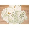 Butterflies flutter in a nature inspired pattern of garden botanicals on our Althea tabletop collection. Featuring a botanical print showcasing whimsical butterflies, dragonflies and fresh greenery in a soothing color way of fern green, gold and beige bring you back to nature in the comfort of your own home. Reverse to a simple fern green damask on cream pattern for additional styling options. Crafted of cotton and machine washable for easy care.