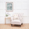 Decorated with a vertical array of alternating daisy flowers in upwards and downwards positions, while boasting vivid yellow centers, delicate green foliage, and graceful white petals, this printed and embellished pillow captures a charming watercolor aesthetic. Set against a tranquil neutral backdrop, it adds a touch of serene elegance to any space.