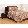 Relax in a woodsy cabin with the Buck Ridge bedding collection after a day of exploring the great outdoors. In a rustic color way comprised of butterscotch, cocoa and cream comprise a mosaic of wildlife and plaid patterns, makes this quilt a must-have for any outdoors enthusiast. Reversible to the same pattern this quilt is sure to delight adventures for years to come. Crafted of soft microfiber, this bedding set is machine washable for easy care. Coordinating accent pillows, euro shams and bed skirt available separately.