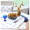 For a coastal inspired look, this embroidered pillow captures the essence of the ocean’s natural wonders. A variety of chilling seashell and sea star shapes are randomly scattered on a crisp but serene white background rendered in a watercolor style effect. The pillow is trimmed in a coordinating dark blue.