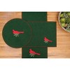 - The classic cardinal motif and evergreen palette pair effortlessly with traditional, rustic, or nature-inspired holiday decor. Its clean edges and detailed appliques create a high-quality appearance that elevates kitchen and dining spaces throughout the season.