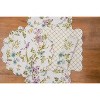 Embrace the beauty of spring all year round with the Carley quilted table linen collection and matching reversible napkin. The painterly flowers in a stunning array of blue, purple, and yellow on flourishing green stems evoke a sense of rejuvenation. For more styling options, these table linens reverse to a simple, yet charming yellow rosebud-style trellis pattern on a white. Love this look? Carley is also available as a bedding collection.