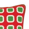 In a festive Christmas color palette, this hand sewn needlepoint pillow will bring Christmas cheer to any room in your home. Green squares on a red ground capture the essence of holiday spirit with 100% wool thread on canvas. Backed with 100% cotton velvet, this pillow is finished with a corded edge, filled with a removable 100% polyester insert, and secured with a zipper closure.