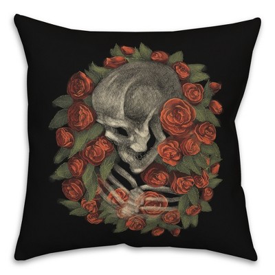 Add festive flair to your home with this 12.5" x 18" coffin-shaped accent pillow featuring a dancing skeleton and colorful floral details. Crafted from 100% cotton, it is perfect for Halloween and makes a great seasonal gift.