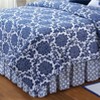 Davenport is oriental inspired bedding presenting stylized flower ring patterns in a rich blue.