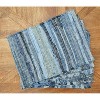 Enliven your table with the bohemian chindi texture and style of the Denim Rag tabletop collection. Featuring hand woven fabric scraps in rustic hues of blue, indigo and white this collection will make every dining experience from casual breakfast to family dinner even more memorable. Crafted of cotton, iron safe and machine washable for easy care. Available in placemats and a table runner.