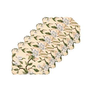 Add a touch of charm to your tablescape with this set of 19-inch quilted placemats, showcasing a reversible design and scalloped edge. Perfect for everyday living, these quilted placemats provide the finishing touch to your dining experience. Stains and spills? No problem. These placemats are machine washable and for easy care. Iron as needed.
