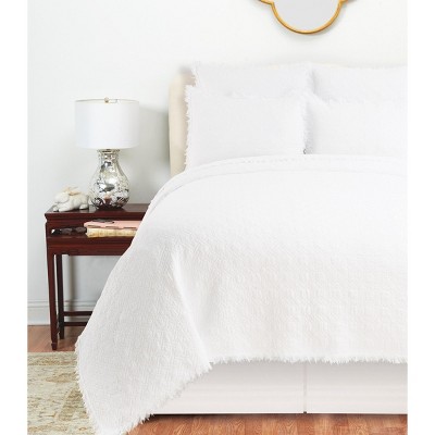 Classic white, timeless comfort, and elegant texture meet to create the Eyelashes White Comforter Set. This unique ruffled eyelash texture is woven to keep your comforter fluffy and lofty while adding a soft, alluring appeal to your bed. All white effortlessly brightens any room, while 100% cotton soothes and lifts your worries away. This comforter set is crafted with a 100-percent cotton cover and polyester filling. A quintessential style adding a subtle pattern while complementing your favorite accessories. This set includes comforter, sham(s) and 2 accent pillows, euro shams are available separately. Machine washable for easy care.